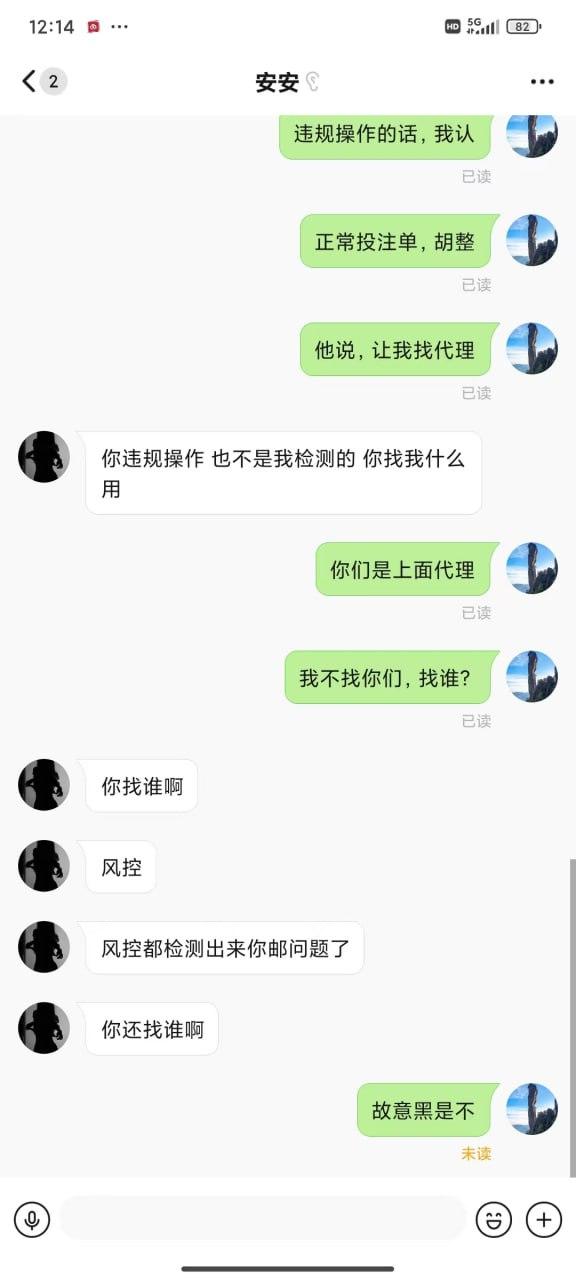 期间输输赢赢 提款都是正常的,可是就在昨天也就是7.7号充值了两千多,打了几个小时余额来到了2W,随后提款等了半小时都没有到账,期间还在投注,突然提示被迫下线,再登陆就显示账户异常。请联系客服。联系客服:就说违规投注持续关注@xinwen1看后续。至于怎么违规也说不出各所以然。玩彩票多年从来也没遇到过这样的事情。(本人玩法:喜欢追豹子,前中后豹子,任选豹子,45=23 89=23单式54注)在此希望得到曝光这样的垃圾平台,惊醒还在小鸟玩的其他玩家。这样的形式做法迟早玩完!