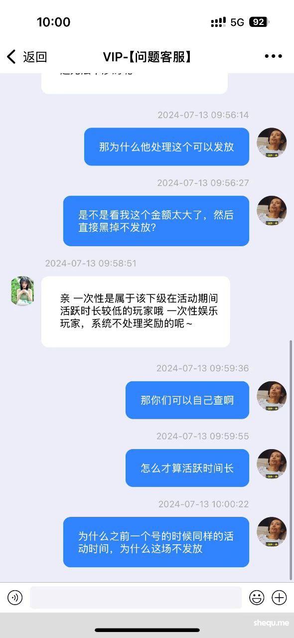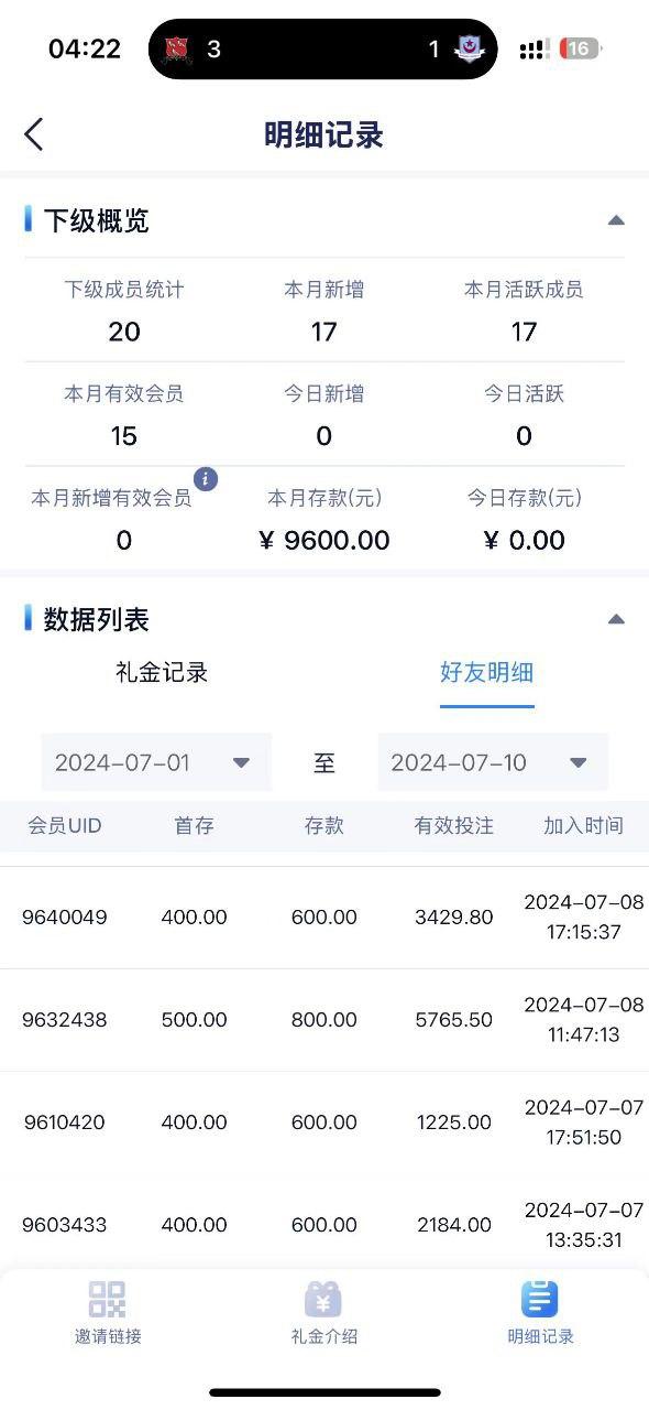 南宫黑人头费我在南宫邀请了15个有效新用户,大部分都是7号和8号9号邀请的,都有连续两天充值,并且达到了500以上,有效流水大部分都有2000以上有些5000,到现在结算的时候说我的是一次性用户,系统不给我发放礼金,全部给我黑了,一共22500元,我在6.10-6.20期间的17号也拉了一个人,他在18号充值和19号充值,总共流水1000,他的情况和我上面15个人的情况一模一样,但是他发放了礼金,到了另一个周期,我拉了15个人,现在却是以各种理由不给我发放礼金,大家看清南宫,不要去南宫拉人了,你拉人拉的多不会给你礼金发放的