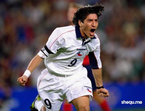 29 Sep 2000: Ivan Zamorano of Chile celebrates his goal in the Mens Football Bronze Medal Match against the USA at the Sydney Football Stadium on Day 14 of the Sydney 2000 Olympic Games in Sydney, Australia.