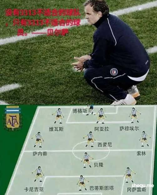 终于有一天,他摸索出了一套极端激进、极端冒险的足球新阵型。这个人就是曾经闻名足坛的阿根廷主教练贝尔萨,他所创立的就是曾经横扫南美的3313阵型。