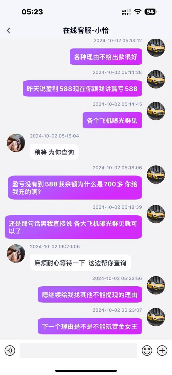 说是首存100+100一杯流水盈利588即可提现。我打到590提现显示差流水,客服说要盈利588,我又打到710提现还是不给出,各种理由不给出款,黑台大家避雷