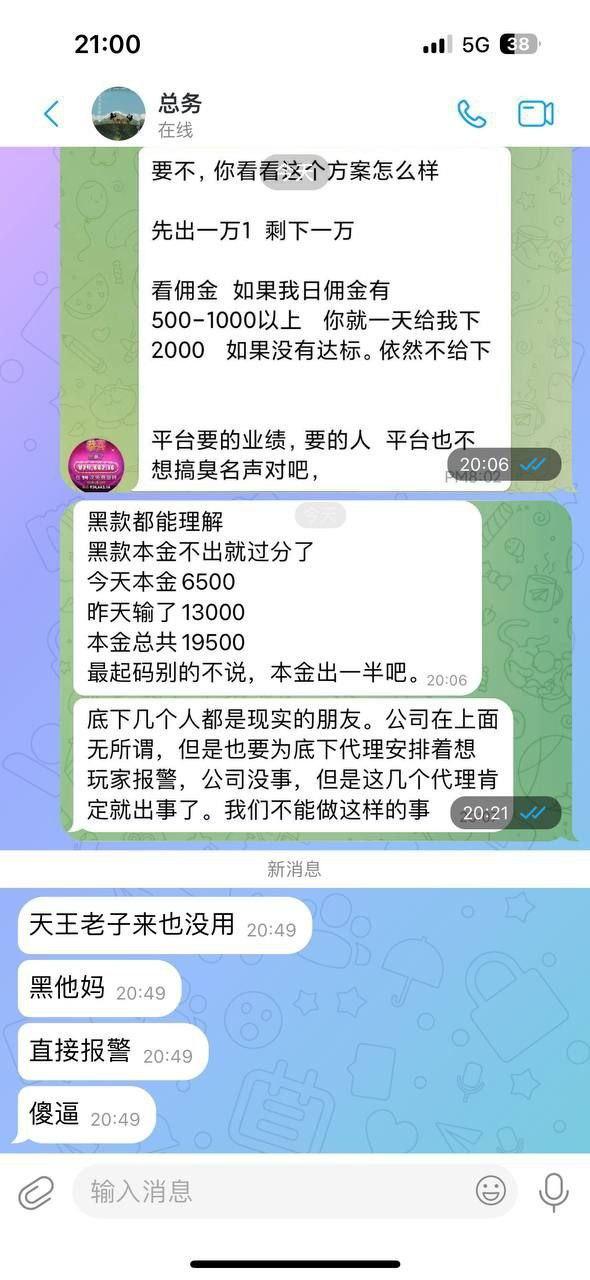 这平台,是奥创开的 他妈逼的主管还嚣张的一逼,直接说,你们这群垃圾代理,黑你们就黑你们,能拿我怎么样,超嚣张