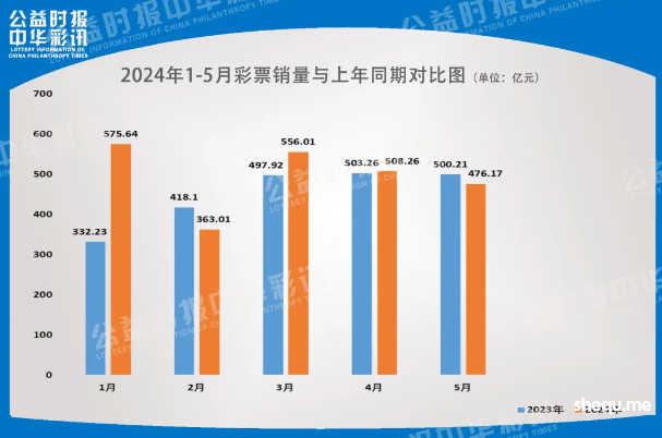 近日,财政部公布了2024年5月份全国彩票销售情况。5月份,全国共销售彩票476.17亿元,同比减少24.03亿元,下降4.8%。其中,福利彩票机构销售170.57亿元,同比增加6.70亿元,增长4.1%;体育彩票机构销售305.60亿元,同比减少30.73亿元,下降9.1%。全国彩票销量减少主要原因,一是受高质量体育赛事有所减少等因素影响,竞猜型彩票增速放缓。二是受多种因素影响,即开型彩票销量下降。三是去年同期彩票市场逐步恢复,基期销量相对较高。