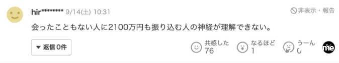 “实在无法理解这种给未曾见面的陌生人转账2100万日元的人的脑回路。”